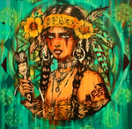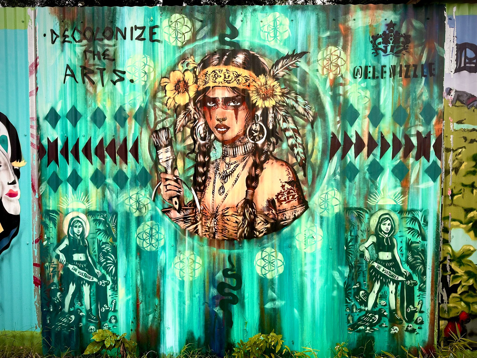 Portrait of a jungle artist warrior-based on a mural about the decolonization of the arts, bringing more power to artists and less to commercial and state curated economics.